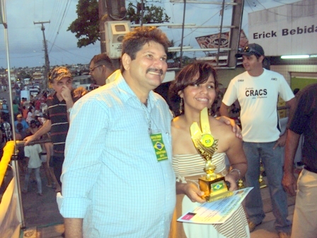 Kátia recebendo o Troféu e Certificado de participação das mãos de Sósteni